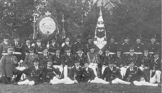 Es ist die neu formierte Ehrengarde im BürgerschützenVerein Sassenberg, die sich erstmals der Öffentlichkeit präsentiert.  Zwar steht auch der Anfang der Ehrengarde ganz im Zeichen der Notlösungen und Improvisationen dieser Zeit, doch unter der Leitung des ersten Kommandeurs Theodor Maas beeindrucken die 25 jungen Männer trotzdem. »Beifall und große Zustimmung« notieren die historischen Quellen übereinstimmend.  Offenbar ein guter Start.