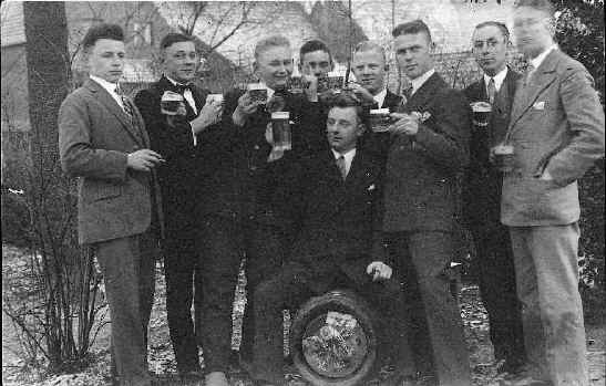 Scheiper (auf dem Fass) bei seinem Abschied 1928 in Bördings Garten Zwar